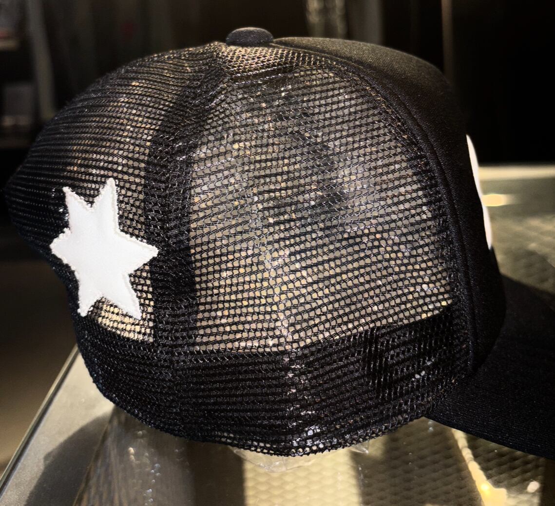 後ろ向きに被ると、サイドの六芒星がより引き立ち、個性とバランスを兼ね備えたスタイルを楽しめます。