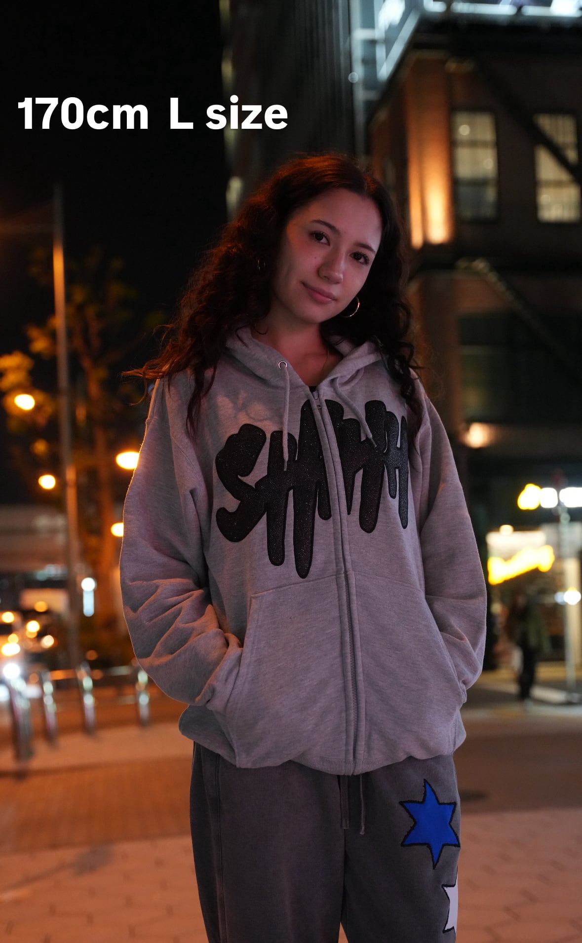 ※ フロントにはブラックラメを使用した立体感のあるSHHHロゴパッチを配置。