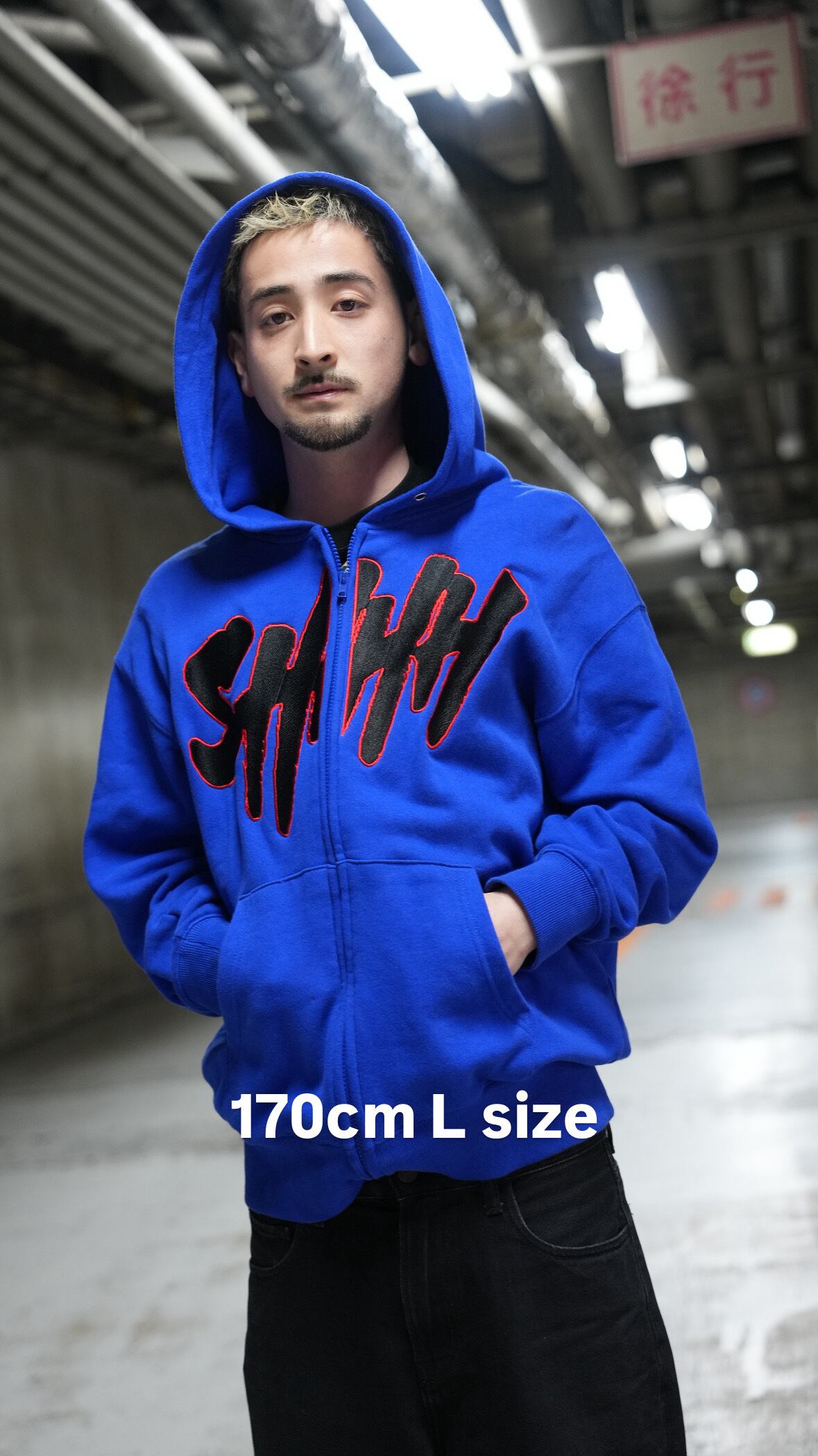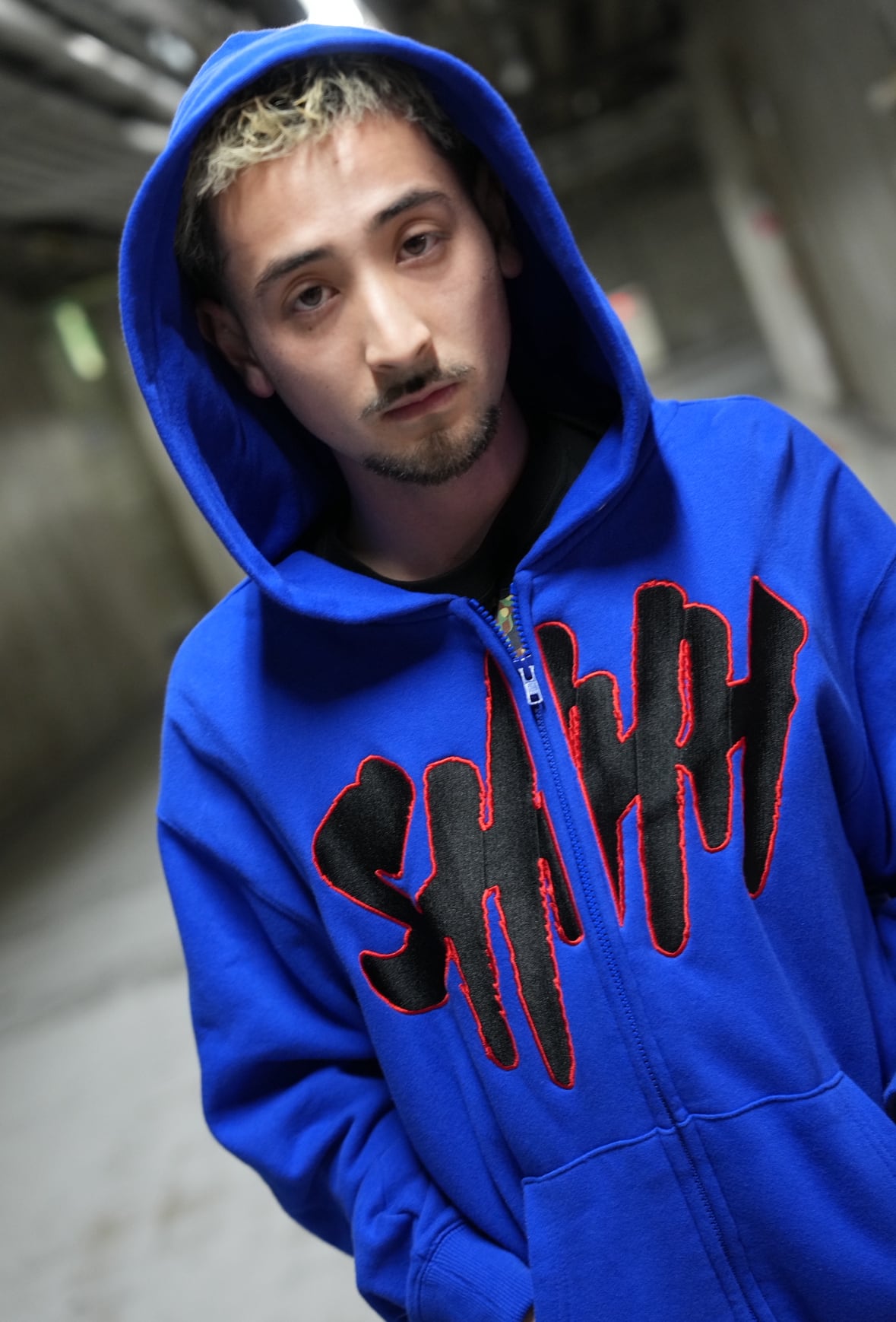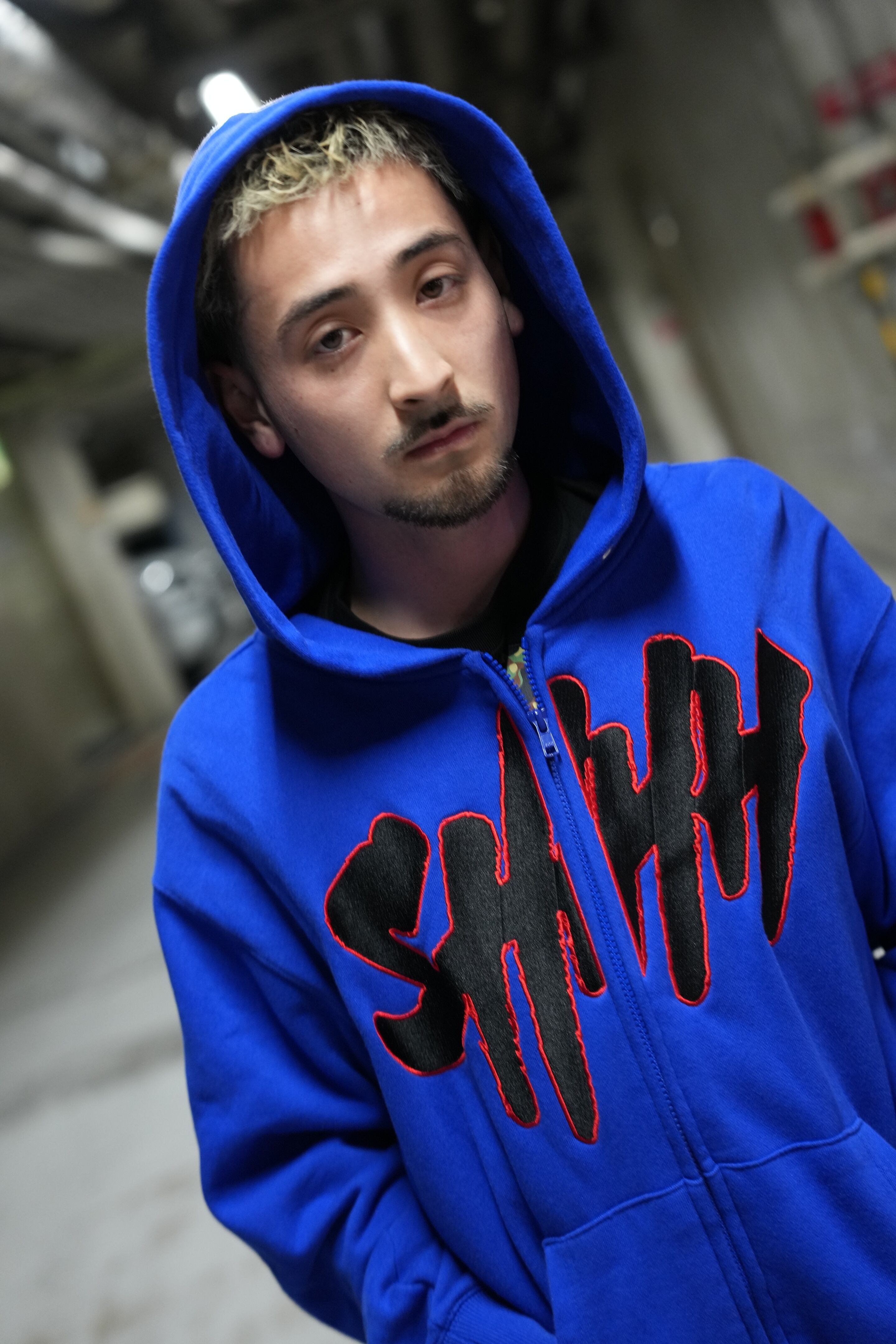 ※ ブルーをベースに、フロントにはブラック刺繍のSHHHロゴを配置。ロゴの外側を赤刺繍で縁取ることで、