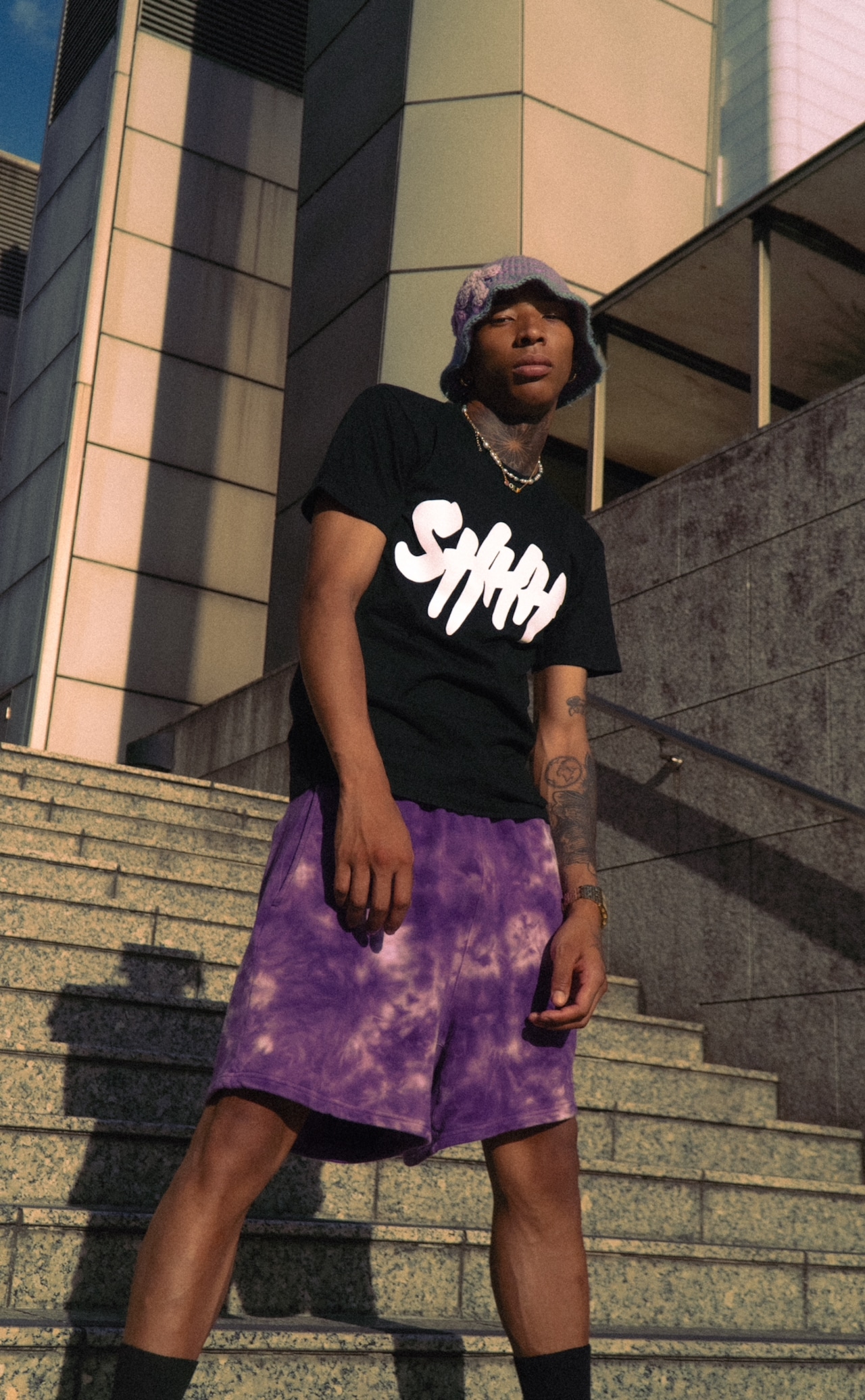 ※SHHHのロゴを胸元にあしらった一枚。